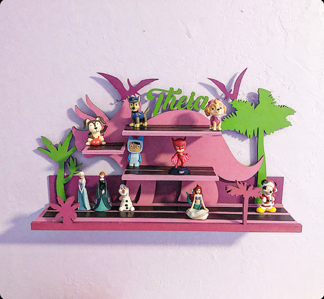 Wall hanging wood piece. Girls TonieBox console and Figures Shelf. Layered, painted and ready to hang. Name and Colors can be customized just email questions to [email protected] Approximately 12 x 22 and 6 x 8.
