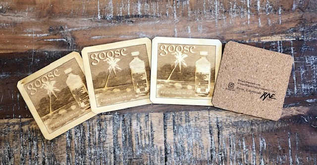 Goose - Butter Rum Coasters. Each purchase comes with a set of 4 cork bottomed coasters.