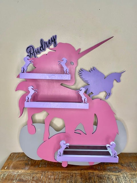 Wall hanging wood piece. Girls TonieBox console and Figures Shelf. Layered, painted and ready to hang. Name and Colors can be customized just email questions to [email protected] Approximately 12 x 22 and 6 x 8.